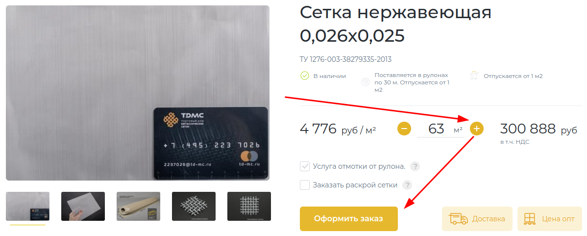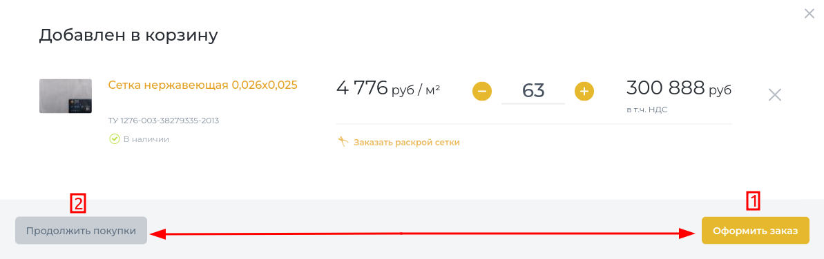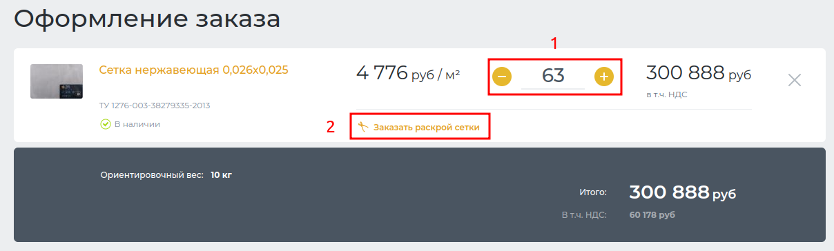 В корзине можно также изменить необходимое количество сетки [1].