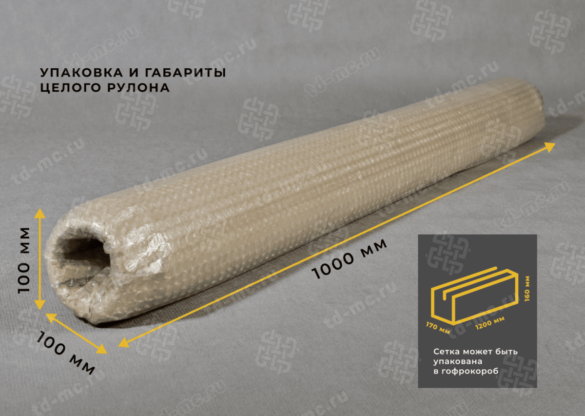 сетка поставляется в рулонах, намотанных на картонную/пластиковую/металлическую шпулю (гильзу). Диаметр рулона 0,1±0,05м.